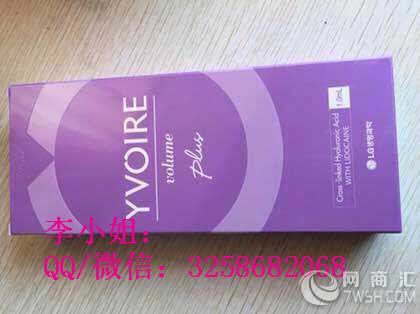 本公司主要经营各类医疗美容产品、美容、护肤、美体、美白、丰胸、减肥以及各类美容材料仪器为主。 供应各种玻尿酸、美白针、溶脂针、青春素、人胎素、除皱紧肤、抗衰老产品。原装进口厂家直销物美价廉! 我们本着诚信至上、品牌为重、长期合作,互利共赢的宗旨,以努力的精神、勤奋的态度为广大客户服务! 欲购从速哦。需要了解请联系我们扣扣/微信:3258682068 韩国YVOIRE伊婉玻尿酸 【简介】 LG生命科学是具有30多年医药研发生产历史的生物制药公司,韩国LG集团的子公司。公司以提供优质产品,共享健康生活为理念,服务于中国健康事业。韩国的整形美容行业发展在世界范围内处于地位,此次LG集团自主研发的注射美容产品玻尿酸是根据东方人的皮肤结构特别进行精心研制,为广大求美者带来了更适合东方人皮肤的玻尿酸-“YVOIRE伊婉” “YVOIRE伊婉”使用的原料是获得了美国FDA和欧洲EDQM认证的LG生命科学自主研发材料,在全球应用于医药领域20多年,安全性得到了广泛认可。 “YVOIRE伊婉”获得了欧盟CE认证,产品以优越的弹性和粘性使得在注射后既有良好的保湿效果又有更加持久的塑型效果,在上市以来,获得了医生和顾客的肯定。 【产品特点】 1、超强的弹性性保障塑形和效果持久: 多种透明质酸填充剂测试剪切储能模量(G’)结果显示,对于每个角频率(f)YVOIRE伊婉显示出优越的弹性。 2、良好的粘度确保流畅度和固定性: 在每个角频率(f)YVOIRE伊婉虽然是双相玻尿酸,但也显示的出良好的粘度,表明产品具有很好的交联稳定性。 3、特别的注射器设计符合人体工程学: 伊婉的注射器是LG公司通过了广泛的市场调研后进行设计改进的,它的设计符合人体工学,让医生在注射时更方便。