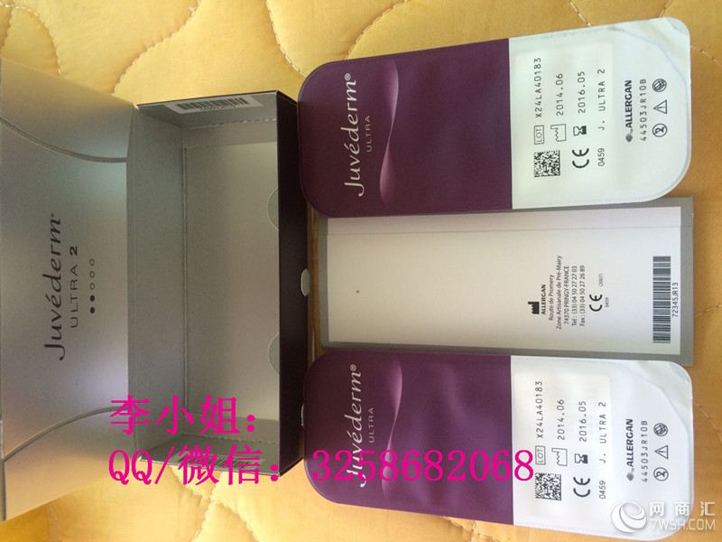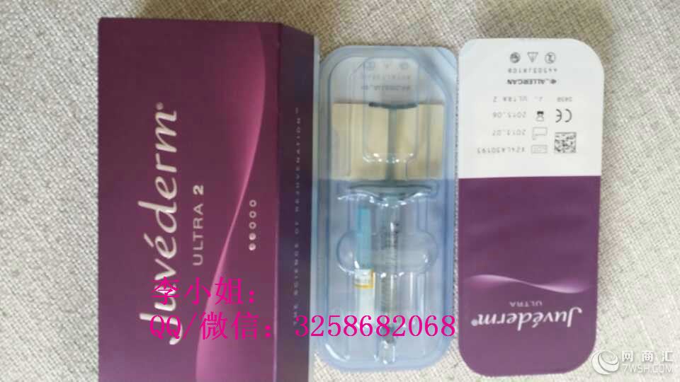 本公司主要经营各类医疗美容产品、美容、护肤、美体、美白、丰胸、减肥以及各类美容材料仪器为主。 供应各种玻尿酸、美白针、溶脂针、青春素、人胎素、除皱紧肤、抗衰老产品。原装进口厂家直销物美价廉! 我们本着诚信至上、品牌为重、长期合作,互利共赢的宗旨,以努力的精神、勤奋的态度为广大客户服务! 欲购从速哦。需要了解请联系我们扣扣/微信:3258682068 新一代透明质酸填充剂Juvederm乔雅登玻尿酸,系由大名鼎鼎的BOTOX(保妥适肉毒素)生产商——美国爱力根(Allergan)公司代理 Juvederm乔雅登玻尿酸的交联处理(cross-linking)采用了Hylacross专利技术,增强了玻尿酸凝胶的高度延展性,让玻尿酸具有流动 Juvederm玻尿酸则是黏稠的流体,浓度较高。注射juvederm玻尿酸更加好推、而且客人的疼痛感较低,Juvederm注射进皮肤后触感比 2号【规格】0.55ml?2支,唇部塑型,去皱纹,软组织填充,中、浅填充。可维持12个月。 3号【规格】1ml?2支,唇部塑型、法令纹、软组织、苹果肌填充,丰额头、太阳穴、深填充,鼻子、鼻唇沟下巴合适,可维持12个月 4号【规格】1ml?2支,较深填充,中、深填充,鼻子、下巴非常合适,可维持18个月。【特别注意:该配方不适合注特射於双眉之间或眼睛下端。】 5号【规格】1ml?2支深填充,鼻子、下巴非常合适,可维持18个月。