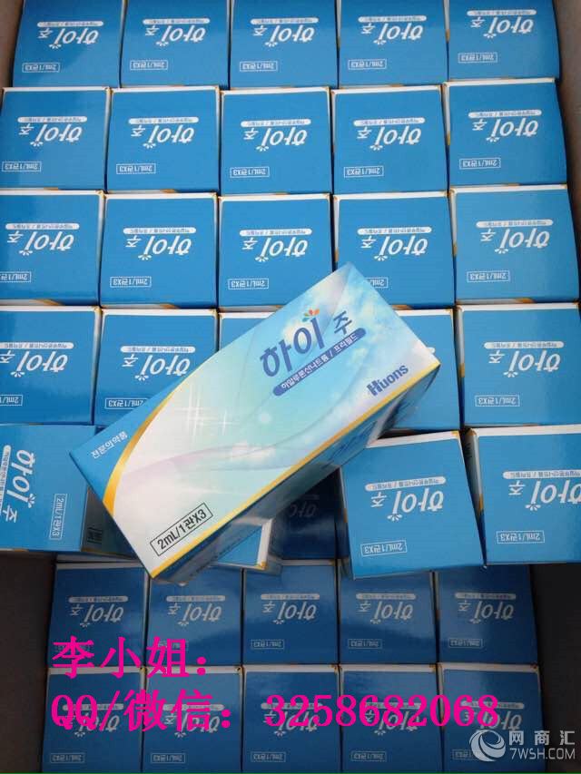 本公司主要经营各类医疗美容产品、美容、护肤、美体、美白、丰胸、减肥以及各类美容材料仪器为主。 供应各种玻尿酸、美白针、溶脂针、青春素、人胎素、除皱紧肤、抗衰老产品。原装进口厂家直销物美价廉! 我们本着诚信至上、品牌为重、长期合作,互利共赢的宗旨,以努力的精神、勤奋的态度为广大客户服务! 欲购从速哦。需要了解请联系我们扣扣/微信:3258682068 韩国海珠水光针 适用于:干燥皮肤,毛孔粗大,皮肤粗糙,暗沉,色斑,痘印,敏感皮肤等。 次注射后,4周后再注射第二针,再过2-3个月后注射第三针,这样水水嫩嫩的皮肤保持1年没问题的。面部,颈部,手部都可以注射的。 注意:这款不带针头,需要手工注射的朋友把前面帽子拿掉后,换上注射针头既可以。 一般来说,肤质干燥、疏于保养的人可以维持的时间较短,约5个月左右,且水光针(水光注射)所维持的时间与接受注射的次数相关。连续进行三次水光针(水光注射)后,效果可以维持1年左右,但根据个人体质,肤质,生活习惯维持时间也会有所差异。目前韩国超过95%的艺人都会定期进行水光针(水光注射)的养护,以保证自己的肌肤时刻达到佳状态。 3、收缩毛孔:采用中胚层疗法,能够刺激肌肤加速新陈代谢,起到收缩细化毛孔的效果,令肌肤更加紧致光滑。