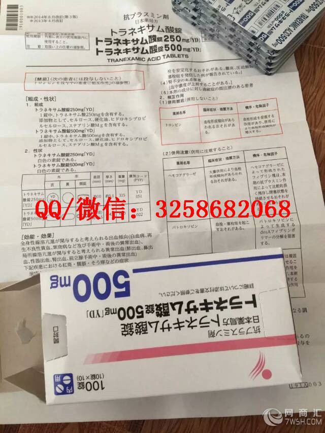本公司主要经营各类医疗美容产品、美容、护肤、美体、美白、丰胸、减肥以及各类美容材料仪器为主。 供应各种玻尿酸、美白针、溶脂针、青春素、人胎素、除皱紧肤、抗衰老产品。原装进口厂家直销物美价廉! 我们本着诚信至上、品牌为重、长期合作,互利共赢的宗旨,以努力的精神、勤奋的态度为广大客户服务! 欲购从速哦。需要了解请联系我们扣扣/微信:3258682068 日本医院处方美白丸一盒能吃一年.实感皮肤变好.远离各种斑.不敢打针还想变白的.超易吸收.500mg/片.相当于普通美白丸的含量50倍.属于全身型美白产品.使用方法:每日2-4粒.睡前服用或午饭及晚饭后服用.产品稀有.且买且珍惜! 日本处方阳进堂传明酸美白片.吃4片等于1只美白针- 超强美白效果是普通美白丸的50倍哦超易吸收.相当于普通美白丸的含量50倍. [功效]去除各类色白暗沉有奇效.属于全身型美白产品.秒杀所有美白丸!光滑皮肤.改善面部气色.