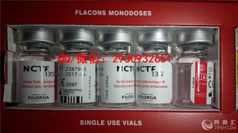 我们本着诚信至上、品牌为重、长期合作,互利共赢的宗旨,以努力的精神、勤奋的态度为广大客户服务! 欲购从速哦。需要了解请联系我们 微信/扣扣:2930932651 法国菲洛嘉全方位能量青春素NCTF 135 HA 5x3ml .全新配方的NCTF 135 HA全方位能量青春素是经过法国菲洛嘉实验室经年累月的辛劳研究成果.先由研发人员在全球选择为珍贵的活性植物精华.将其保存在纯净新鲜状态注入配方之中.全方位能量青春素加添的元素为干燥缺水及敏感肌肤提供绝佳的锁水滋润抗皱效果.更换性细胞的自我修复能力.加强皮肤防御能力,蕴含活肤及抗氧化之作用.提供肌肤所需的养分及氧气.增强皮肤吸收功能.收紧毛孔.排走沉积毒素.抵抗游离基.从内部深处唤醒人体细胞.使其恢复正常的细胞分裂速度.再生分化新细胞.使细胞更具有活力.令肌肤柔软嫩滑. 产品规格: 5只3毫升小瓶 5枚3毫升注射器 5根18G采血针头 5根30G注射针头 5根32G注射针头 具体的8种功效是: 1.皱纹的治疗:通过激活皮肤损伤的细胞主动修复.和皱纹说拜拜, 2.活性保湿:减少皮肤水分的流失,让皮肤的水份含量如婴儿般娇嫩, 3.促进血液循环.面色红润.光彩照人, 4.促进细胞再生.延缓衰老, 5.刺激细胞生长:促进成纤维母细胞的生长.让肌肤年轻的更久, 6.收细毛孔有效改善皮肤的致密.促进胶原蛋白的生长, 7.增强细胞的防御功能.抵抗**基, 8.对皮肤中胶原纤维和弹力纤维再生作用达366%.效果更持久!