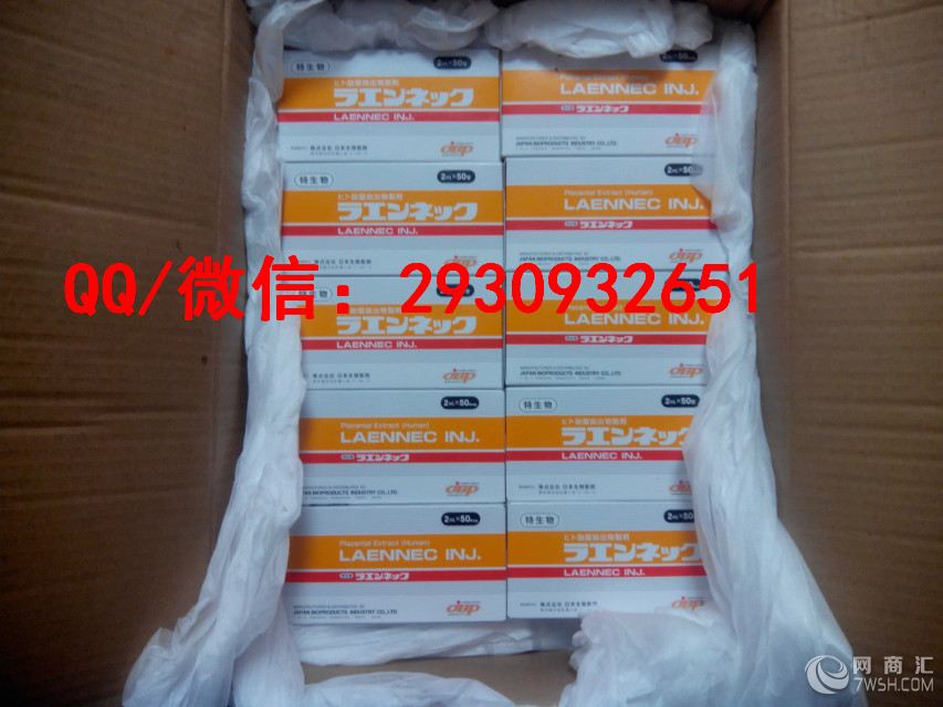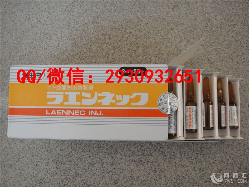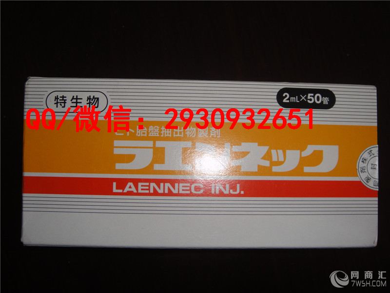 我们本着诚信至上、品牌为重、长期合作,互利共赢的宗旨,以努力的精神、勤奋的态度为广大客户服务! 欲购从速哦。需要了解请联系我们 微信/扣扣:2930932651 莱乃康LAENNEC人胎素制剂日本JBP(株式会社日本生物制剂)高尖生物技术打造的胎盘素针剂.是早获得厚生省批准的产品之一.在长达50多年的患者应用中.得到极高的评价.胎盘素活细胞治疗已经成为众多明星(女星占80%).日本皇族必须的青春保养方式. 功效与作用 1.抑制发炎及抗过敏 2.养颜美容护肤:美白.改善肌肤粗糙.肌肉松弛.皱纹增多.祛斑.美白.防止肌肤张力降低.使皮肤滋润细腻.改善和维护肌肉的弹力等. 3.调节和平衡内分泌.延长青春期.抗衰老作用明显.对高龄者的维持体力与精力的恢复.能够从细胞开始达到返老还童的效果. 4.解毒,保护肝脏.在针对肝脏损伤.酒精肝.肝功能回复方面具有很好的功效. 5.调整自律神经作用.改善身体脏腑功能状态.改善新陈代谢.增进食欲.促进血液循环和造血功能, 6.提高免疫能力.极大提高对抗疾病的抵抗力.提高身体抗过敏能力.抗疲劳.回复活力,提供对免疫性疾病.过敏性疾病.风湿.气喘.过敏性皮炎.化学物质或食物过敏.自身免疫性疾病等抵抗力. 7.改善和提高性功能有特效.对于女性丰乳有奇效. 8.改善妇产科疾患, 更年期障碍.更年期前综合症.月经不顺.痛经等.(因此剂中不含有雌激素.故有子宫内膜炎.子宫肌瘤.子宫癌.乳癌等病史的患者亦可应用) 9.修复受伤的皮肤组织.促进创伤修复作用.加速伤口愈合.对病愈回复有极大帮助.提高身体抗突变和环境损伤能力, 10.提升基础代谢作用.使基础代谢更加旺盛.使细胞.器官或脏器功能活化,