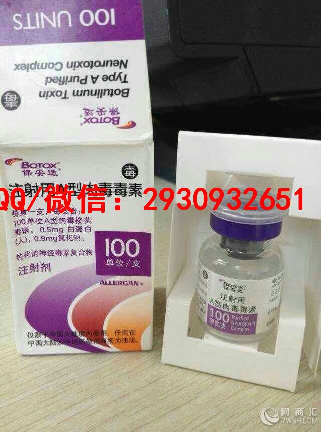 我们本着诚信至上、品牌为重、长期合作,互利共赢的宗旨,以努力的精神、勤奋的态度为广大客户服务! 欲购从速哦。需要了解请联系我们 微信/扣扣:2930932651 [肉毒素的用途] ***除皱*** 脸部的皱纹大部分都是由面部表情肌肉引起的.利用Botulax针剂麻痹减弱形成皱纹的表情肌肉. 将面部皱纹拉平的方法对去除眉间皱纹.额头皱纹.眼尾纹.嘴角皱纹与鼻梁纹有着良好的效果. 施术时间仅需5分钟.简单快捷几乎没有副作用Botulax在特性上6个月内持续效果. 约6个月后需重新注射才能维持效果.这样注射两三次以上.形成皱纹的肌肉弱化后. 就算再形成皱纹也会明显少于以前.持续性的效果得以期待. ***四方脸矫正*** 拥有四方脸的女性给人一种男性化的印象.可以通过简单的Botulax注射. 达到修饰脸型改变印象的效果.形成四方脸的原因分为下颌骨本身发达的情况.咀嚼肌发达的情况. 还有下颌骨和肌肉由于经常咀嚼口香糖.鱿鱼等习惯的人形成咀嚼肌发达的情况.可以通过麻痹肌肉. 不留痕迹.即可得到修饰脸型的效果.广受职场人员欢迎.Botulax的特性可以维持肌肉麻痹6个月左右. 肌肉萎缩矫正四方脸的效果可以持续1年左右. 四方脸自测法将两手掌紧贴左右耳朵下方.咬紧臼齿.鼓起来硬硬的不会就是肌肉(咀嚼肌).