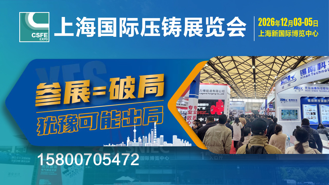 Shanghai International DieCasting Expo 2026第二十二届上海国际压铸展览会 时间:2026年12月03日-05日 地点:上海新国际博览中心(浦东区龙阳路2345号) 主办单位 上海华野会展有限公司 上海华野同创展览有限公司 上海华野瑞创展览服务有限公司 CSFE-展会概况 “中国(上海)国际压铸、铸件展览会”创办于2005年,已成功举办二十一届,展品覆盖铸件、压铸件、压铸模具、压铸材料、压铸设备及压铸配套等领域,展会规模日益壮大,是国内举办专业化、权威性的压铸、铸件专业展。展会积极响应国家政策号召,倡导企业走创新、高效的绿色压铸之路,为产业科学健康与自然、社会和谐发展发挥着积极的推动作用。 第二十二届中国(上海)国际压铸、铸件展览会将于2026年12月03日-05日在上海新国际博览中心隆重召开,届时预计1000家压铸、铸造及相关企业齐聚,展览面积40000平方米,超过30000名专业观众。本届展会将以“国际化、专业化、高层次”的要求,邀请中国和世界压铸厂家展示新产品、新技术、新设备,从而帮助业界高层全面了解全球压铸产业链的新趋势,同时为观众打造产品、材料和设备的一站式采购平台! CSFE-上届回顾 第二十一届上海国际压铸、铸造展览会于2025年12月02日-04日在上海新国际博览中心成功举办,吸引了930家企业参展,共有66个国家和地区的31,589人次到场参观,其中国内观众达27,451人次,海外观众达4138人次。值得一提的是,海外观众超历史记录,同比上届增加31.25%。展览同期成功举办多场行业技术研讨会。为了更多无法到达展会现场的专业观众与买家能够参与展会中来,展会特邀多家行业媒体针对现场盛况、同期活动进行了线上直播,吸引了超过10万人次通过线上平台参与了本届展会。 CSFE部分参展企业:华东铸协展团、国外铸造\压铸协会展团、安徽含山县展团、上海圣德曼、CHUNHO、ALD真空炉、ABB、徕斯机器人、发那科、新东机械、KW公司、洛拉门迪、ABP、富士电机、IMF、铝台精机、东大三建、意特佩雷斯、宗炫、宗拓自动化、莱格禄普拉司、史杰克西、上海常崟、宁波思进、东莞捷劲、安德里茨、布勒、力劲、伊之密、广东宏图、文灿、淮海压铸机、浙江万丰、一汽铸造、丹东华日、无锡吉冈、宁波鑫力洁、山东银光钰源、东莞锐准、宁波浩璐、象山联强、昆山晟发、台州金盖、深圳美铝、杭州思看、苏州净百威、浙江五星、浙江瑞宏、东莞恩创、常州欧凯、丹东锐新、江苏锐美、荆州同盈、青岛华顺达、丰田工机、重庆迎洲、昆山菲特尔、深圳博业、江阴宇光、山东裕隆金和、嘉兴诸利安、昆山世冠、宁波宇邦、浙江浩天、深海精密、天津三英、张家港百思特、杭州科龙、成都正恒、江苏大奇、广州锐美、浙江万众、惠州广兴、莱州华银、苏州永和诚、南京海诺、宁波云涂、北京阿塔米、莱州莱洛特、余姚四方、上海阿道、常州施欢、海门茂融、北京聚光盈安、上海固彼、江苏耐琦、宁波天辉、苏州达博闻、常州岛电、无锡亮鑫、东莞金长德、厦门华易迅、大连(林)、上海劲途、四川赛恩思、上海三都、宁波开甲、宁波银润、上海鸣轩、山东山材、上海锐巨、常州爱沃特、苏州赤诚、深圳德科、佛山隆易、常州精艺、鼎欣吉盛、富兰克、希曼顿、浙江利硕、嘉兴荣昌、常熟上煌、无锡振哲、天津锐力通、金华瑞创、宁波瑞凯、昆山锋钝、保定立元、菏泽德隆、无锡普睿、青岛世悦、玉环太平洋、深圳雨滴、台州永裕、宁波埃科瑞特、宁波维精、纽威工业、福建强跃、宁波精磊、宁津伍岳、常熟慕乐、苏州金楷、浙江诺肯、浙江合达、丰县翼虎、苏州英飞思、江苏博涛、浙江东润、重庆惠晨、山东天空、苏州欧菲尔、扬州嵘泰、潍坊山青、台州立众、律朗仪器、江苏丹翔、浙江宏达、湖南优钢、宁津启航、石家庄盛华、浙江欧诗漫、杭州弗克、南京艾布纳、辽宁轻工、丹东天科、杭州龙砺、无锡博迪、江苏百利达、宁波极望、天津学森、上海哈登、上海柏时、宁波大华、浙江洁霸、永康翰泰、江苏瑞思汇、淄博纳米特、余姚丰华、台州京鑫浩泰、青岛聚金、上海占国、永州中新、玉环凯达、上海昊湘、上海君霸、天津德施普、仪征龙泰、温州三也、江苏联诚、温岭博航、万协电力、杭州富阳、浙江利越、苏州德耐、苏州良匠、广东欧沃、江苏格莱特、安徽鼎方、河北新立中、淮安东威、台州泓冠、吉安爱尔创、新乡元亨、昆山名威、宁波龙相、济南盛阳、青岛欧尔、青岛华灿、博爱汽车、无锡久源、湖北芮哲、江苏缪斯、苏州优悠、新沂昊旺、江门宏拓、嘉善恒远、常州永航、山东康胜、宁波吉胜、上柴动力、宁波若驰、华朗三维、西安地山、含山南洋、泰州百全、潍坊荣亨、山东大季、湖南润泰、碧彦仪器技、上海福柯斯、平户机械、浙江博星、东营恒科、江西科源、安徽荣杰、大奕电机、微旷科技、鞍山一拓、大连秋冈、邢台禄锡、淄博丰标、滕州华成、浙江奥美、泰州诚旺、大晃机械、上海广倍、青岛金诺、苏州微晶、江苏奥文、沧县冠翔、苏州金澄、宁波搏浪、上海福斐、潍坊华星、唐山金湾特、苏州恒嘉、东莞叁峰、天津圣金特、苏州纳似韦、安徽祥东、深圳微视、淄博淄翼、大连阪部、辽宁大地、江西凤凰、山东铸力、沈阳凯成、连云港源钰、上海兢朋、山东临港、宁波